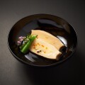 高野豆腐にたらのすり身、人参、ほうれん草、きくらげを詰めて、おだしを含ませました。