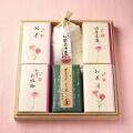 母の日パッケージ『鯛茶(2個入)』と『松茸お吸物(2個入)』と『紅鮭昆布巻』と『黒毛和牛すき焼しぐれ煮』と『胡麻豆腐(2種入)』と『お茶漬(2種入)』を詰め合わせました。